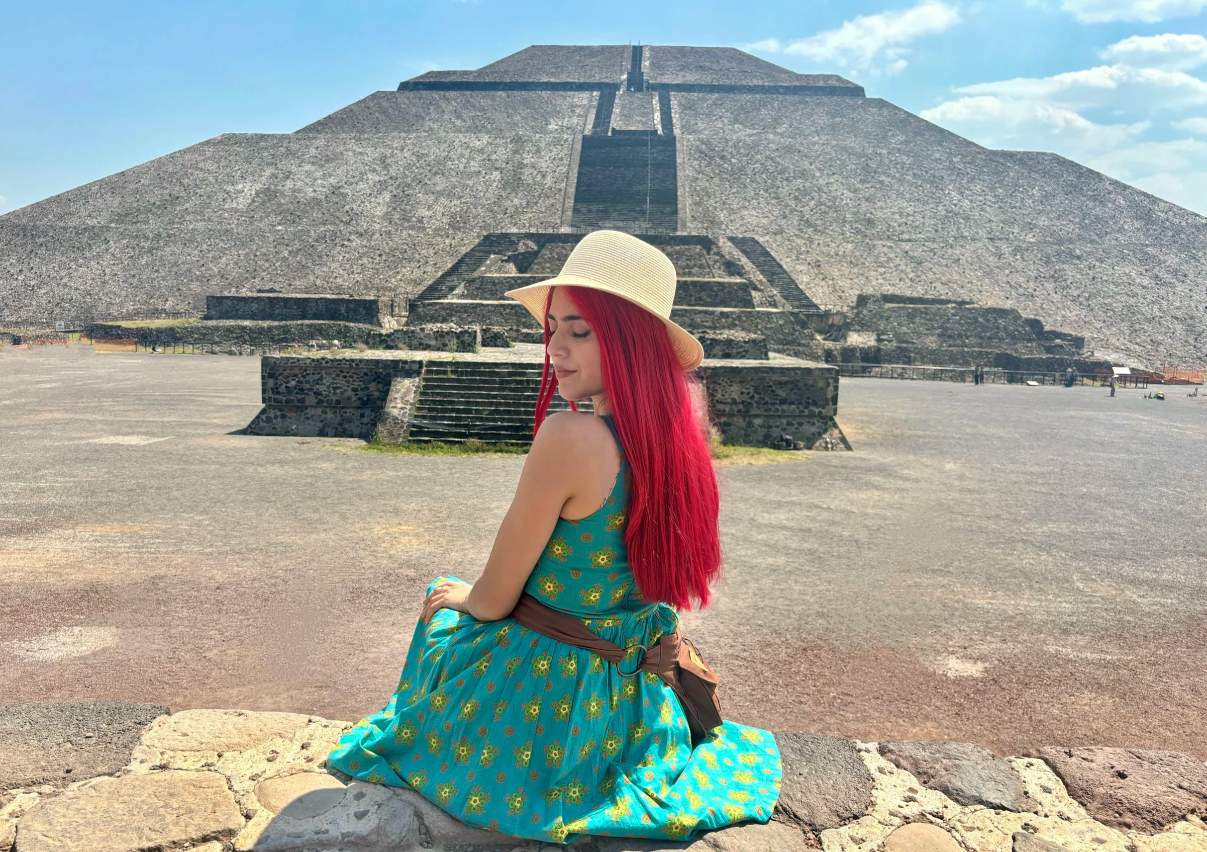 We had to wake up very early to get to our tour of the breathtaking pyramids of TeotihuacΓ‘n. Thankfully our pickup point was just across the street from the Palacio del Bellas Artes, so we didn't have a long walk. I was also able to enjoy my concha from the day before while we waited. It took a little time for the guides to pick us up by bus, but it's always good to come early just in case. Although we brought water with us, and were prepared with extra sunscreen; our bus stopped at a convenience store to pick up more water, snacks and use their bathroom if needed.
