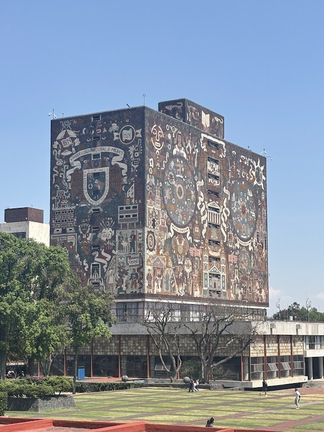 Ricardo took us for a quick pit stop to see the Universidad Nacional AutΓ³noma de MΓ©xico (UNAM), a prestigious public research university, founded in 1551, known for its significant contributions to education, culture, and research in Mexico and Latin America. Our reason was mostly to see the sweeping murals on their buildings done by Rivera. We learned about some of the successes coming out of the school while admiring the artwork and architecture.